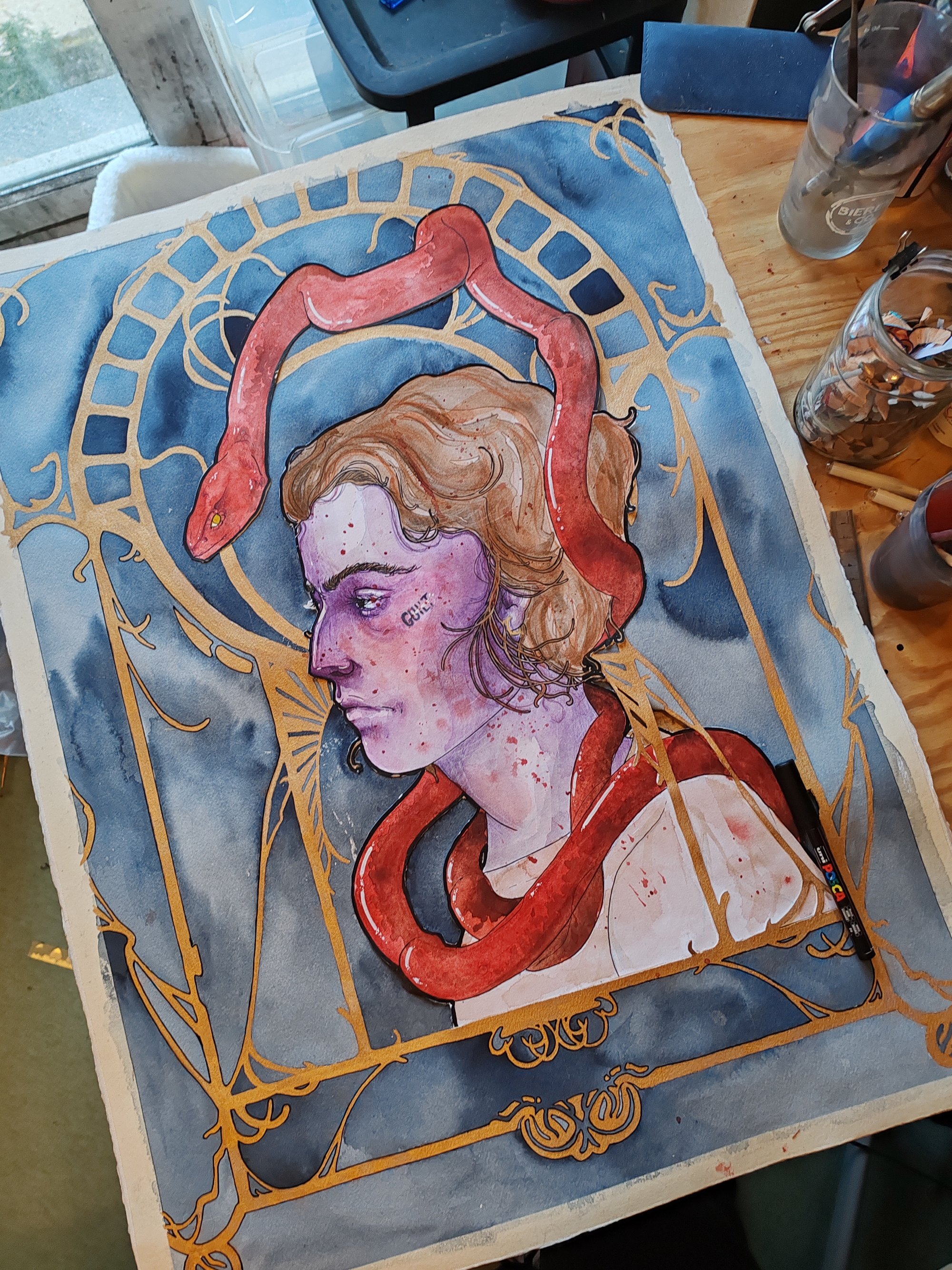 Représentation de la culpabilité sur papier Arches en A2 avec découpes et jeux de profondeurs