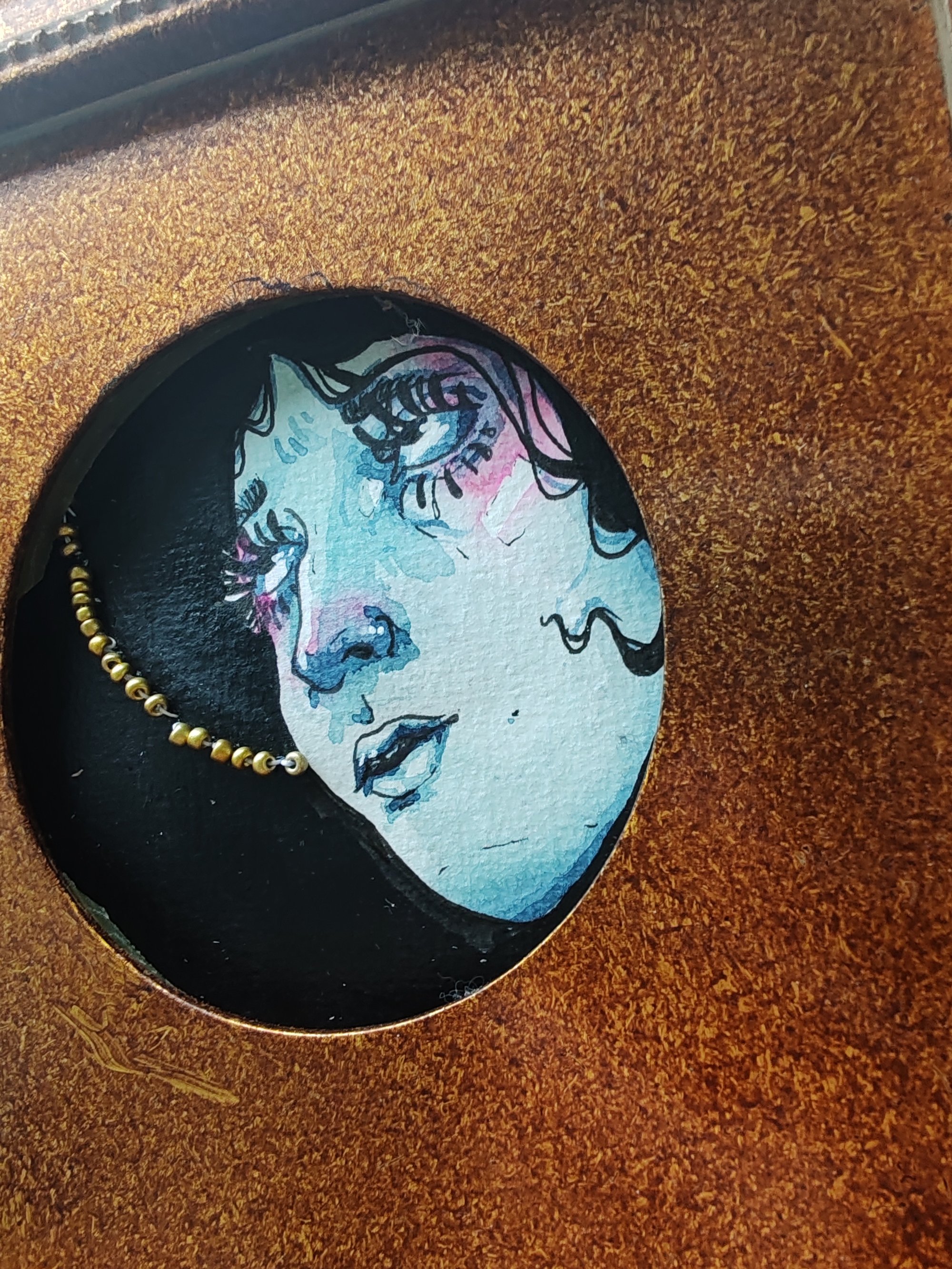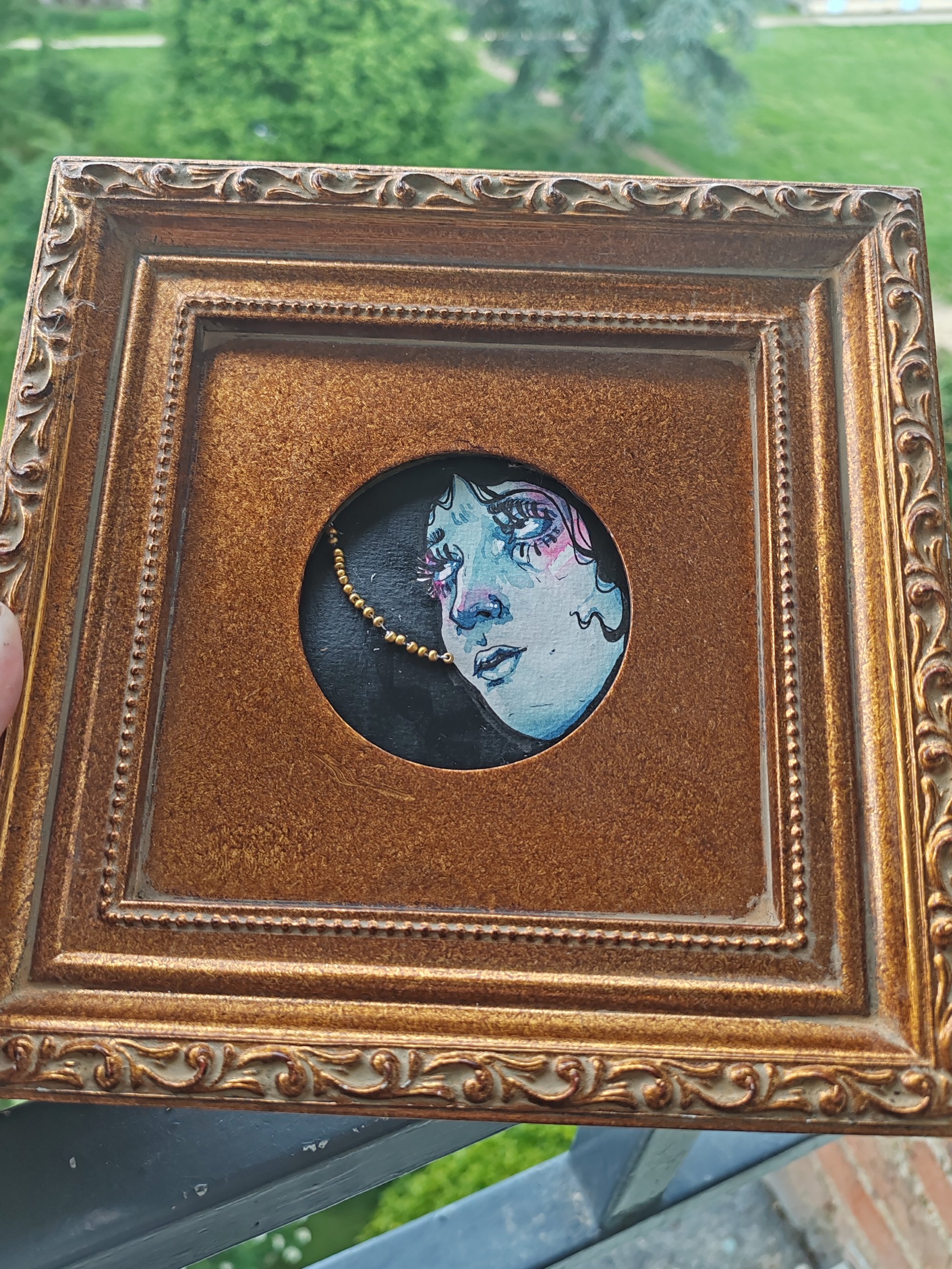 Dans son magnifique cadre vintage, une piéta à l'auréole brodée de perle dorée